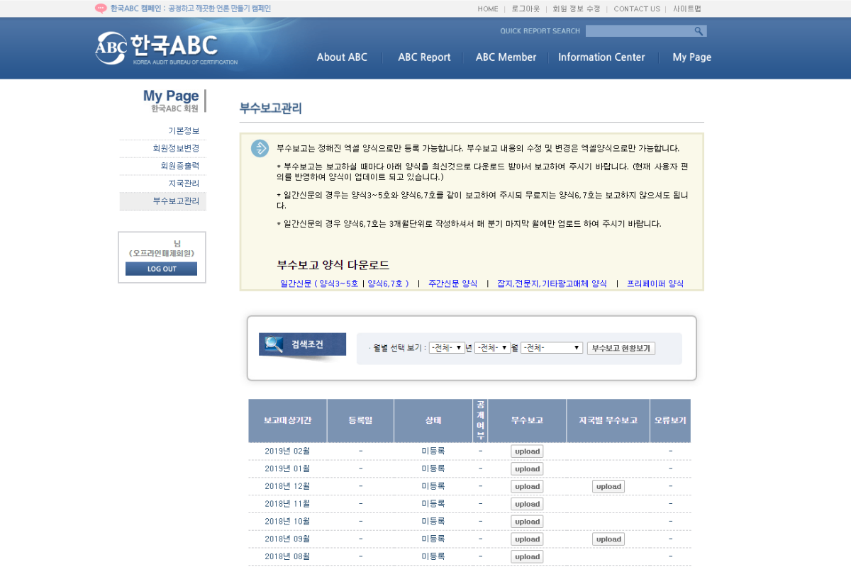한국 ABC 협회 부수보고 시스템 및 웹사이트