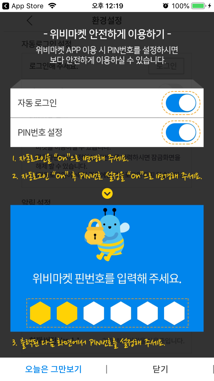 - 쇼핑 이용 시 고객님의 정보 보호를 위해 PIN번호를 설정하시면 보다 안전하게 쇼핑을 이용하실 수 있습니다.