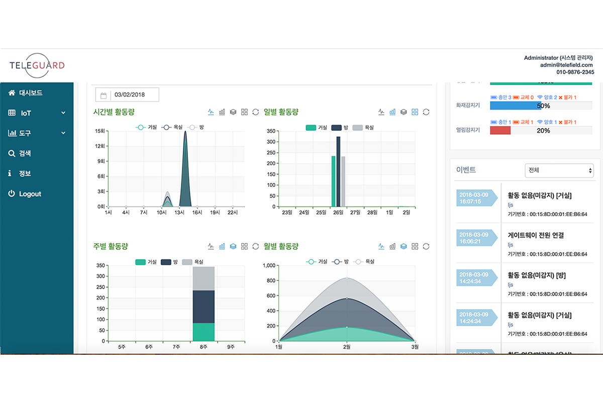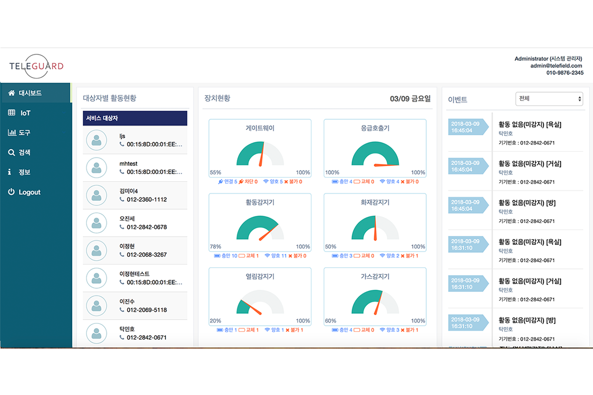 대상자의 활동 위치 및 외출/귀가 상태 등의 활동정보와 화재 발생/가스 누출/대상자의 응급상태 발생시 119 전화 및 알림전송 기능 관리