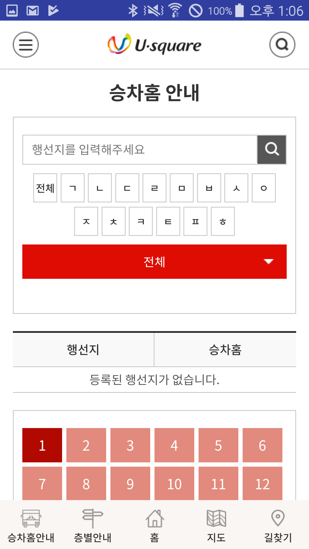 목적지별 터미널 내에 승차홈 알림 제공