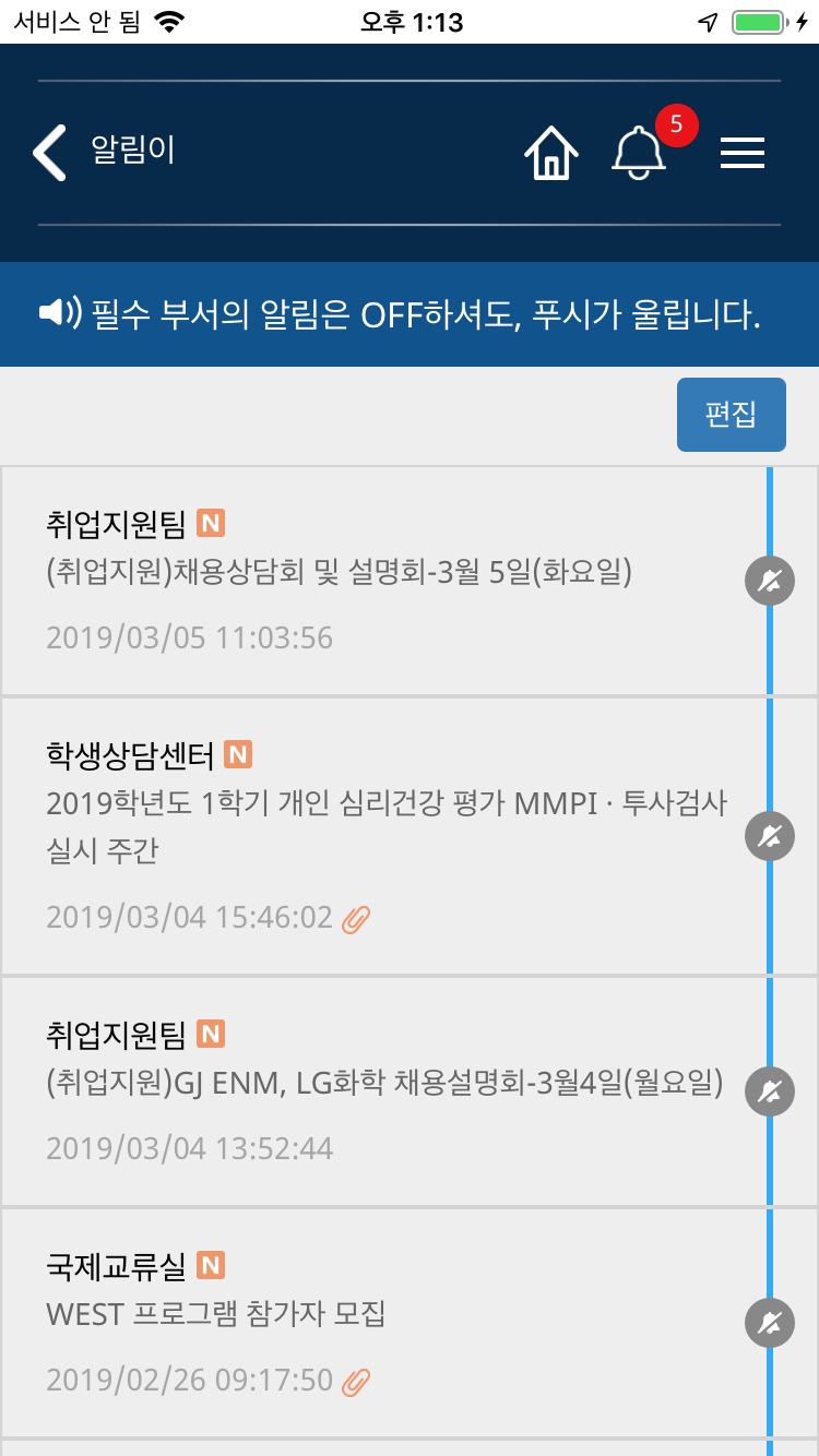 알림이 - 학교 행정부서의 공지사항을 받는 단방향 메시지 시스템