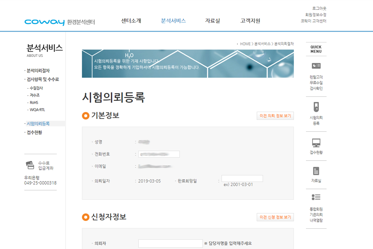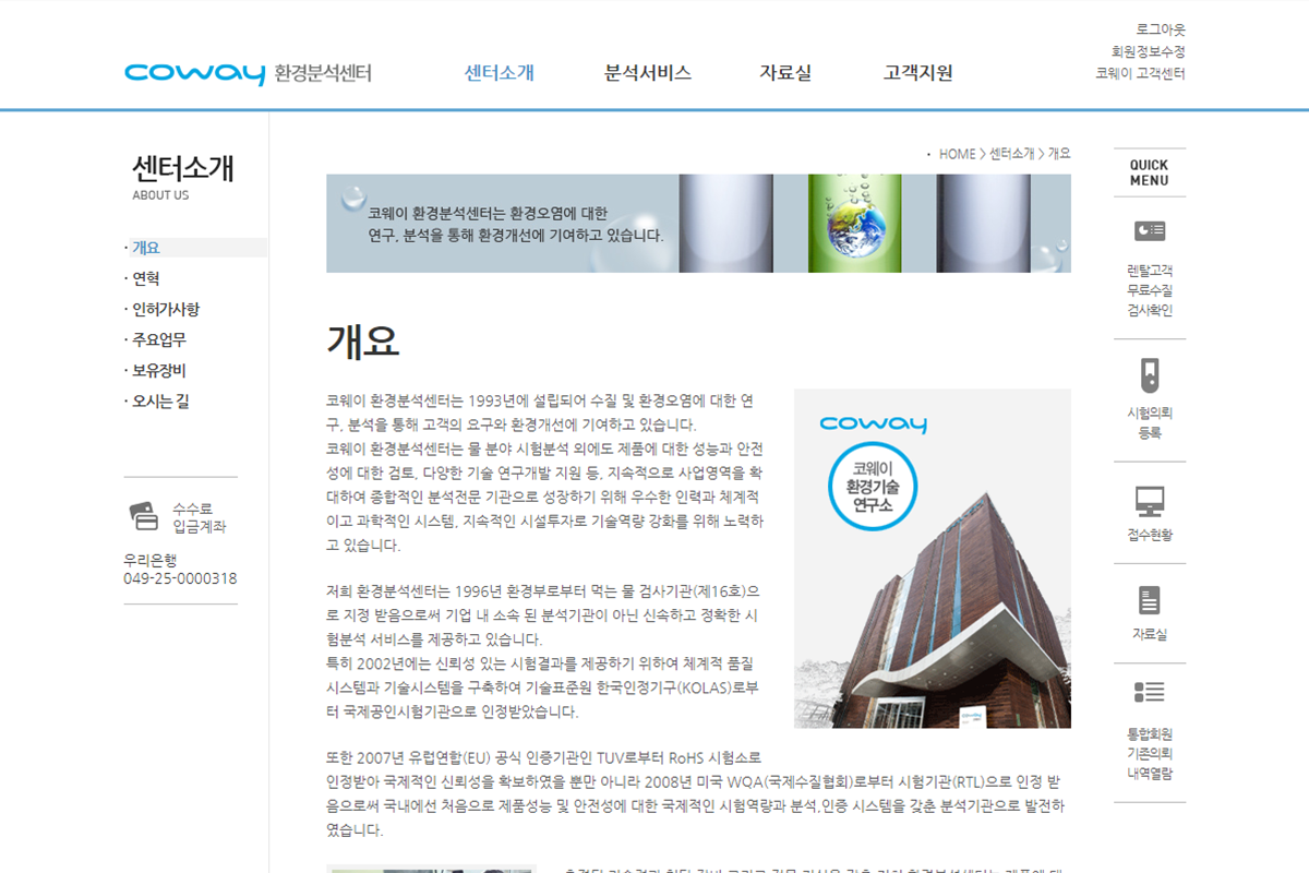 코웨이 환경분석센터 사이트 개편 및 유지보수