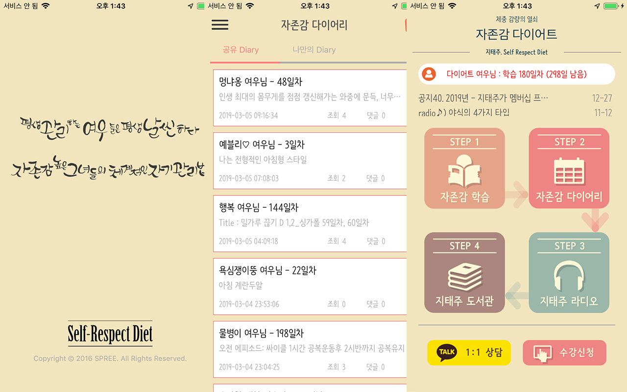 여기에 자존감미션을 바탕으로 학습컨텐츠가 제공됩니다. 이야기의 형태로 제공되는데, 365일 다이어트하는 ‘희진’이라는 여자와 다이어트 하지 않아도 늘 날씬한 ‘여우’라는 여자의 일상을 보여줍니다. 이 둘은 같은 회사 동료로, 같은 장소, 시간, 상황 속에서 어떻게 다르게 생각하고 행동하는지 보여줍니다. 때문에 희진이의 이야기를 통해 ‘어쩌면 나도?’하면서 공감하는 것과 동시에 스스로의 생각과 행동을 되돌아보며 인지하게 되고, 여우의 이야기를 통해 ‘아~ 그래서 여우는 평생 날씬하게 사는구나!’하면서 배우고 닮아가려고 하는 거울뉴런효과가 발동하면서 실제 행동을 유도합니다.