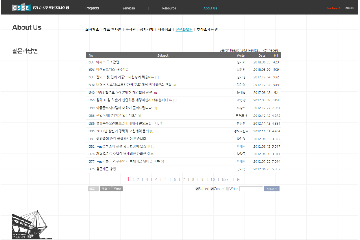 CS구조엔지니어링 웹사이트 개발 유지보수