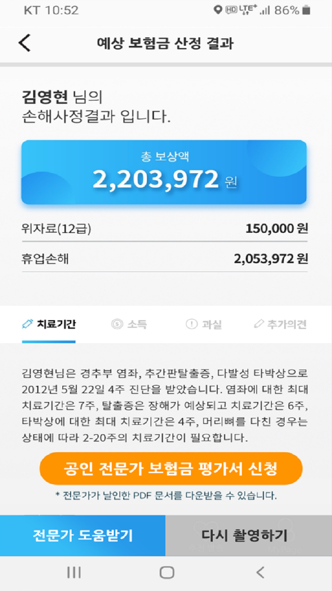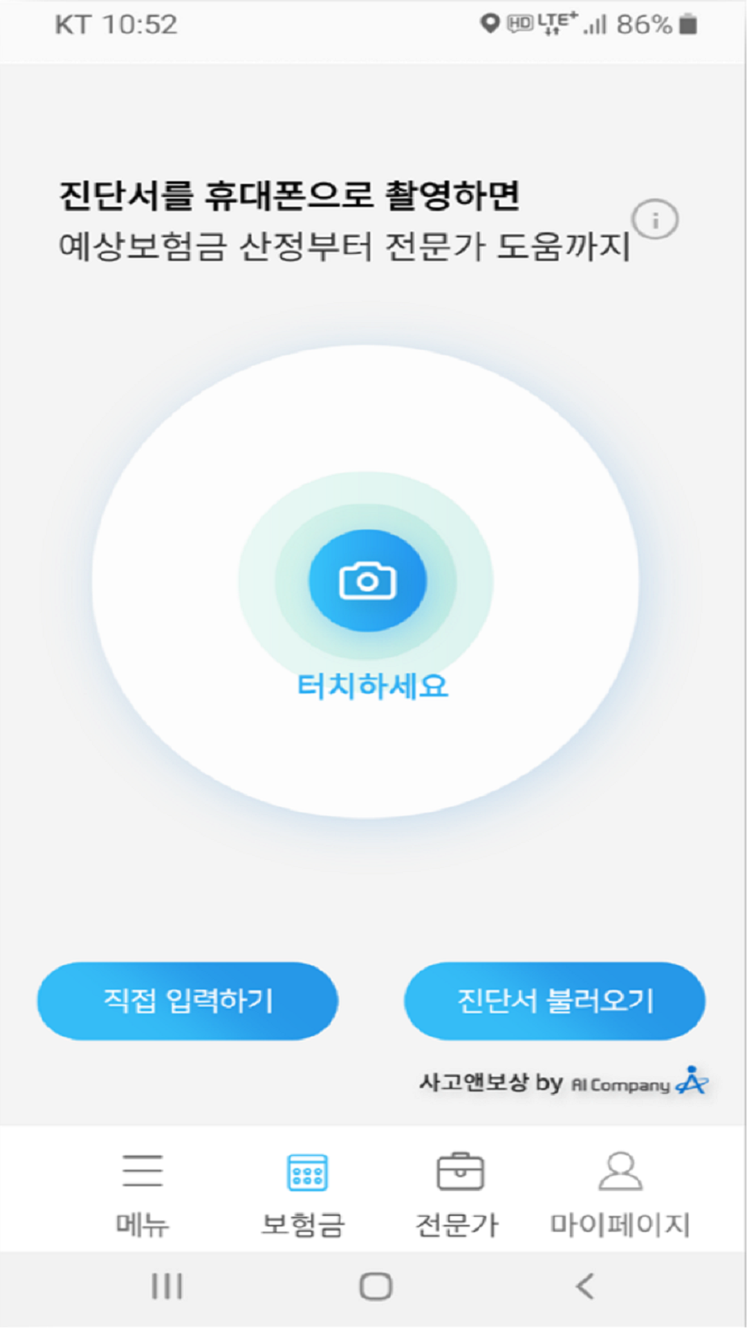 인공지능(AI)에 기반한 보험금 예측 시스템 교통사고시 진단서를 휴대폰으로 촬영 또는 직접입력하기 하면,